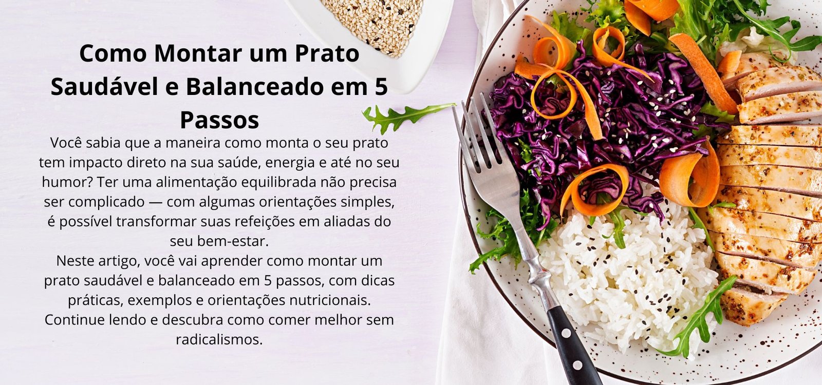 Neste artigo, você vai aprender como montar um prato saudável e balanceado em 5 passos, com dicas práticas, exemplos e orientações nutricionais. Continue lendo e descubra como comer melhor sem radicalismos.