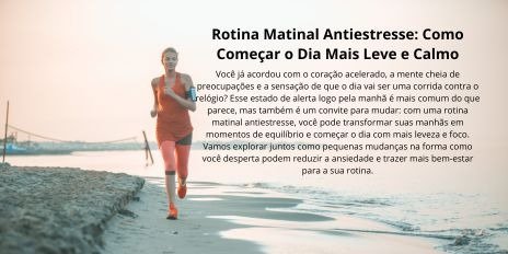 Você já acordou com o coração acelerado, a mente cheia de preocupações e a sensação de que o dia vai ser uma corrida contra o relógio? Esse estado de alerta logo pela manhã é mais comum do que parece, mas também é um convite para mudar: com uma rotina matinal antiestresse, você pode transformar suas manhãs em momentos de equilíbrio e começar o dia com mais leveza e foco.