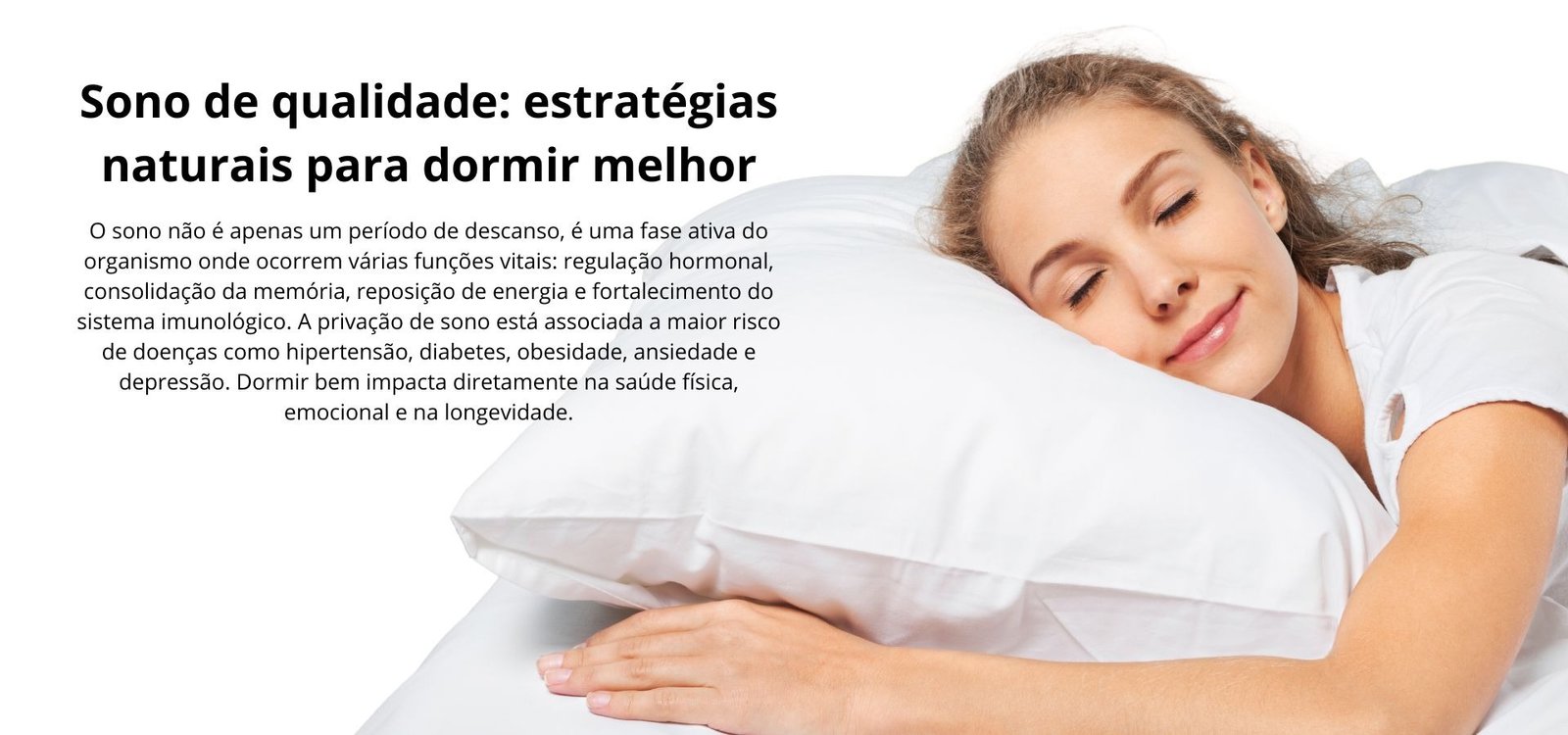 O sono não é apenas um período de descanso, é uma fase ativa do organismo onde ocorrem várias funções vitais: regulação hormonal, consolidação da memória, reposição de energia e fortalecimento do sistema imunológico. A privação de sono está associada a maior risco de doenças como hipertensão, diabetes, obesidade, ansiedade e depressão. Dormir bem impacta diretamente na saúde física, emocional e na longevidade.