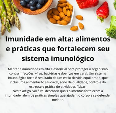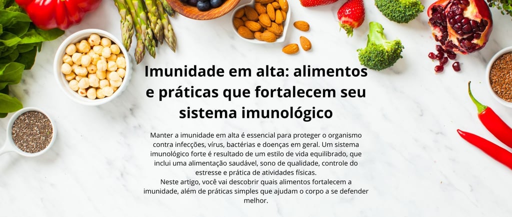 Manter a imunidade em alta é essencial para proteger o organismo contra infecções, vírus, bactérias e doenças em geral. Um sistema imunológico forte é resultado de um estilo de vida equilibrado, que inclui uma alimentação saudável, sono de qualidade, controle do estresse e prática de atividades físicas.